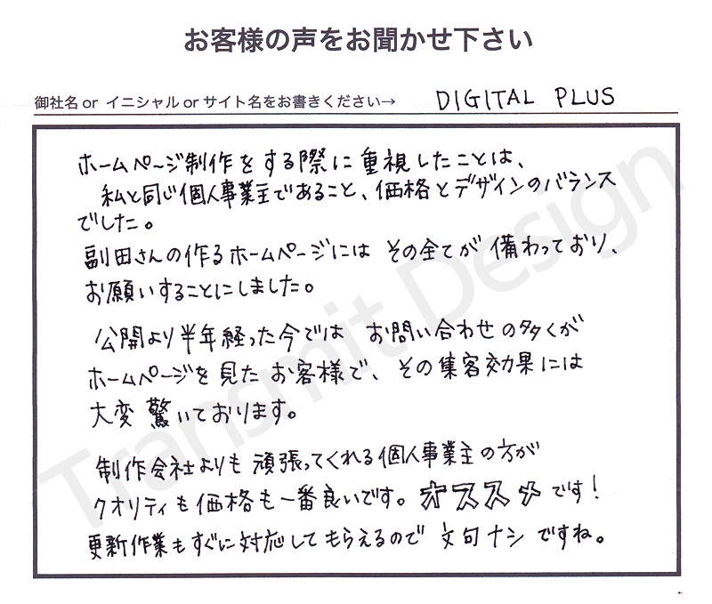 Transmitdesign(トランスミットデザイン)はSOHO・個人事業として人件費をかけずに企画やデザインを行っておりますので、サイトのクオリティーに対して的確で良心的な金額設定が可能です。